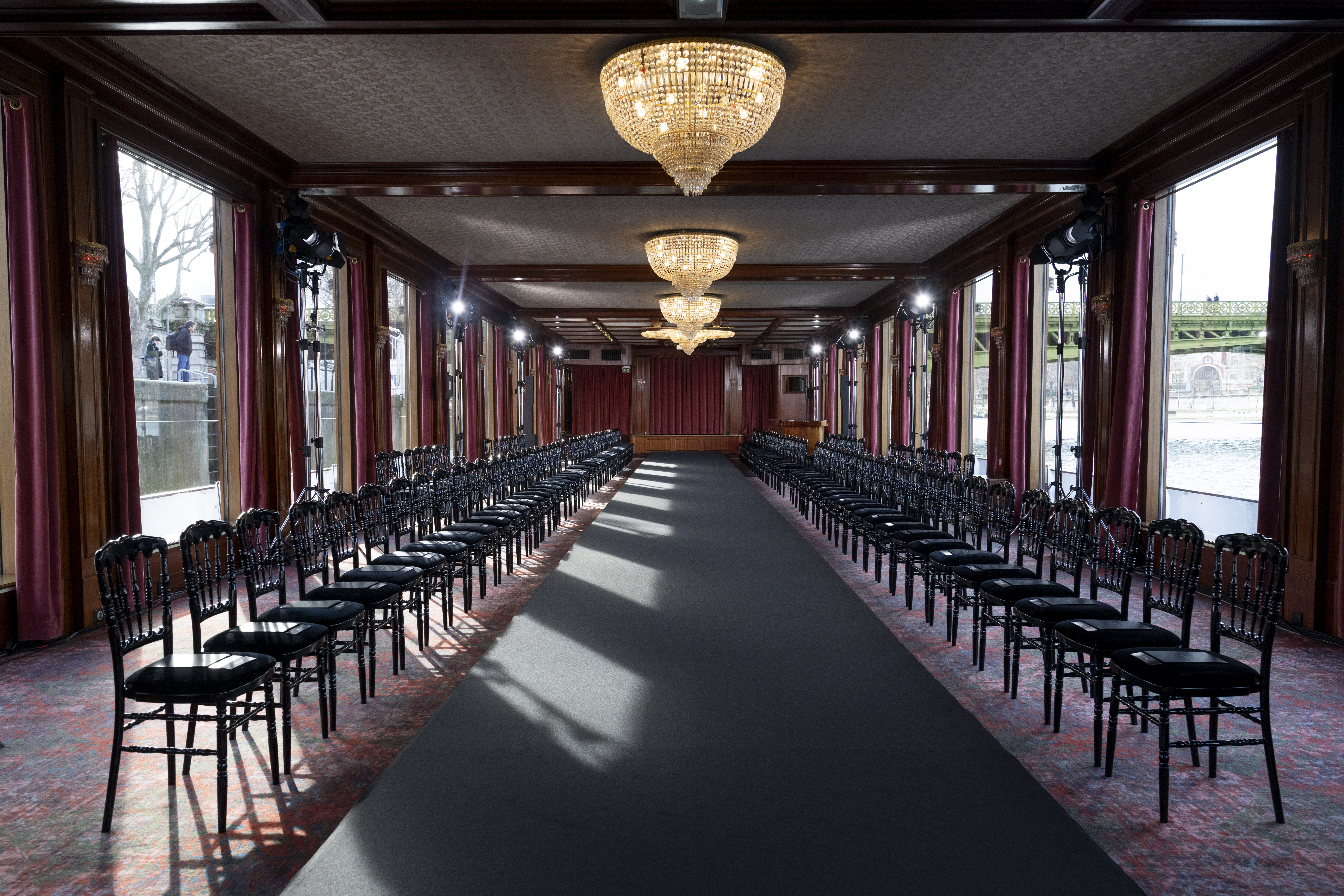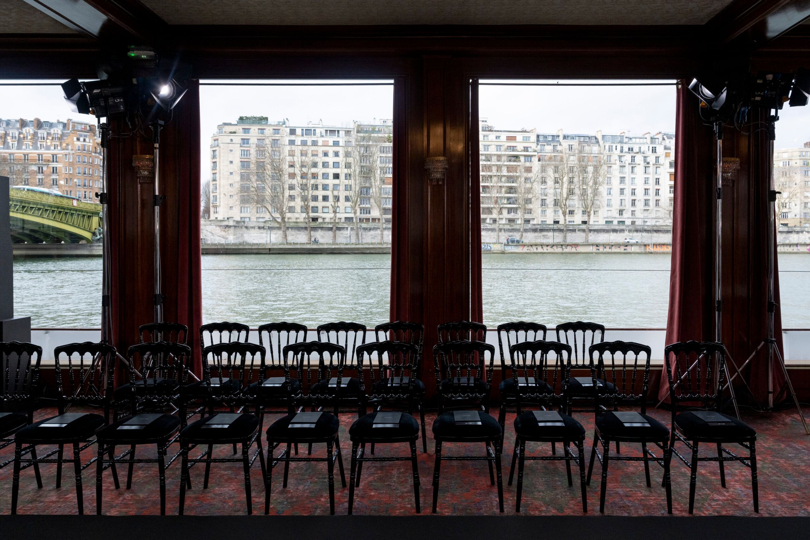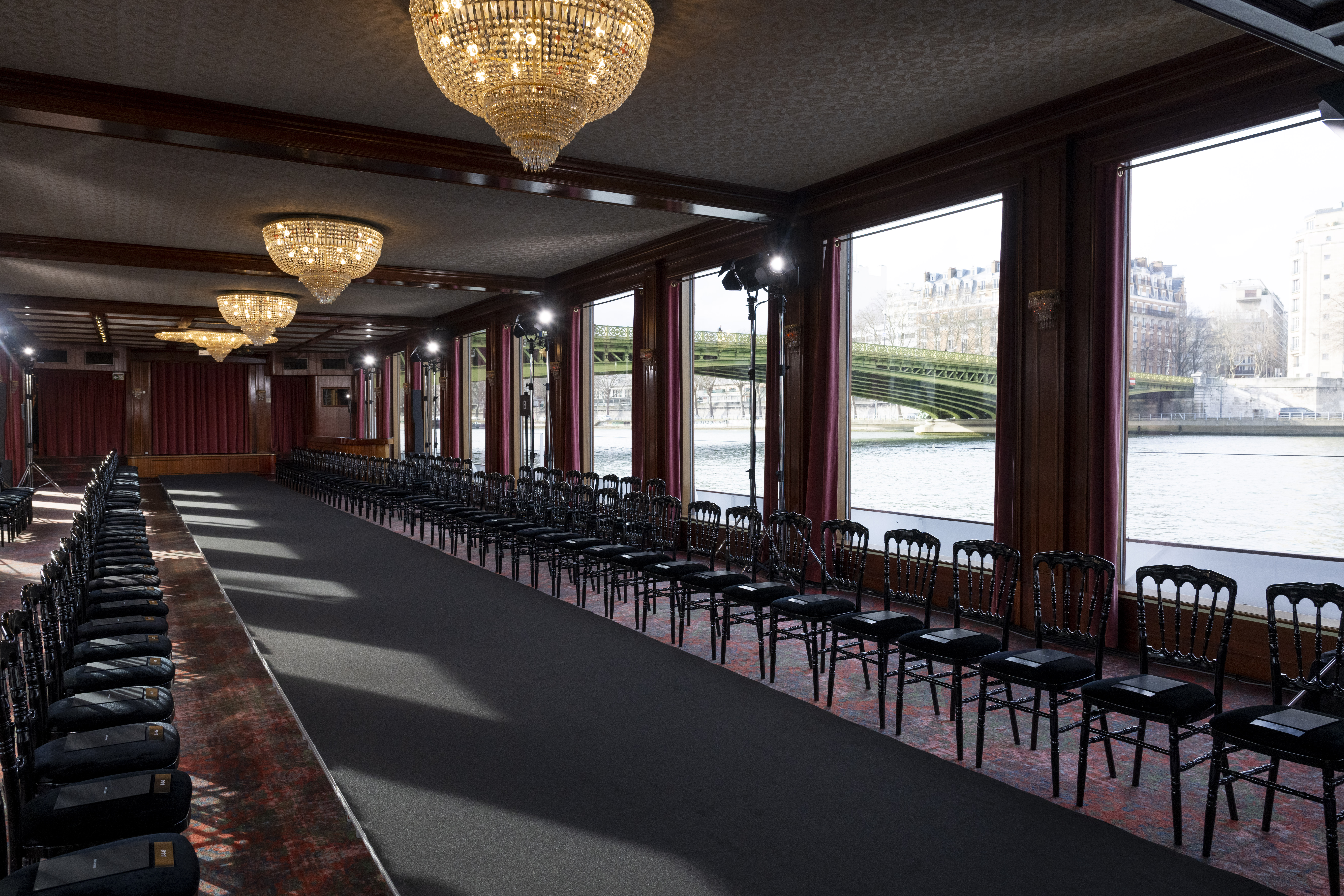 The debut runway show took place aboard the Peniche Le River Palace, transforming a unique venue into a poetic metaphor for movement, direction, and new beginnings.
