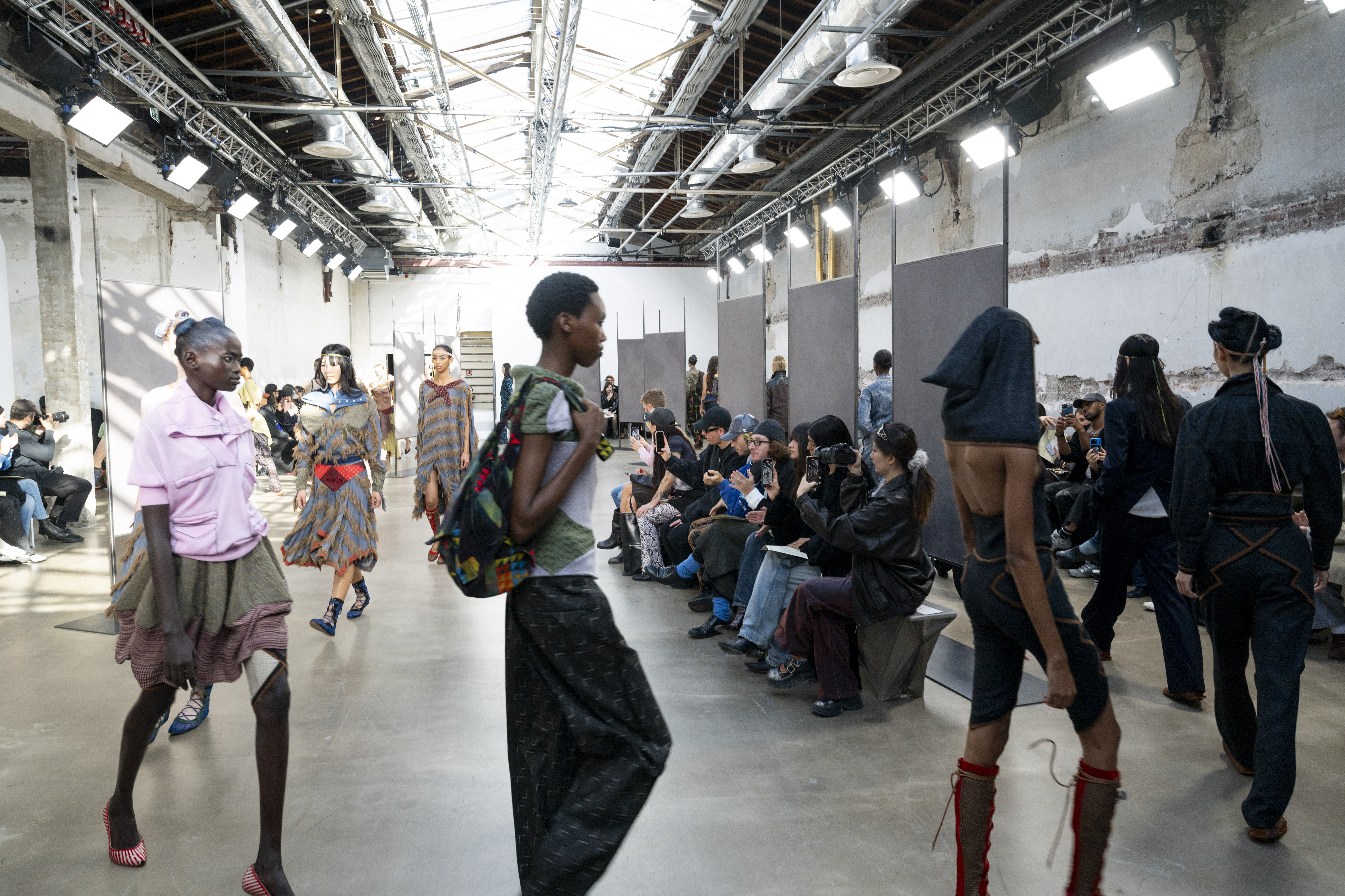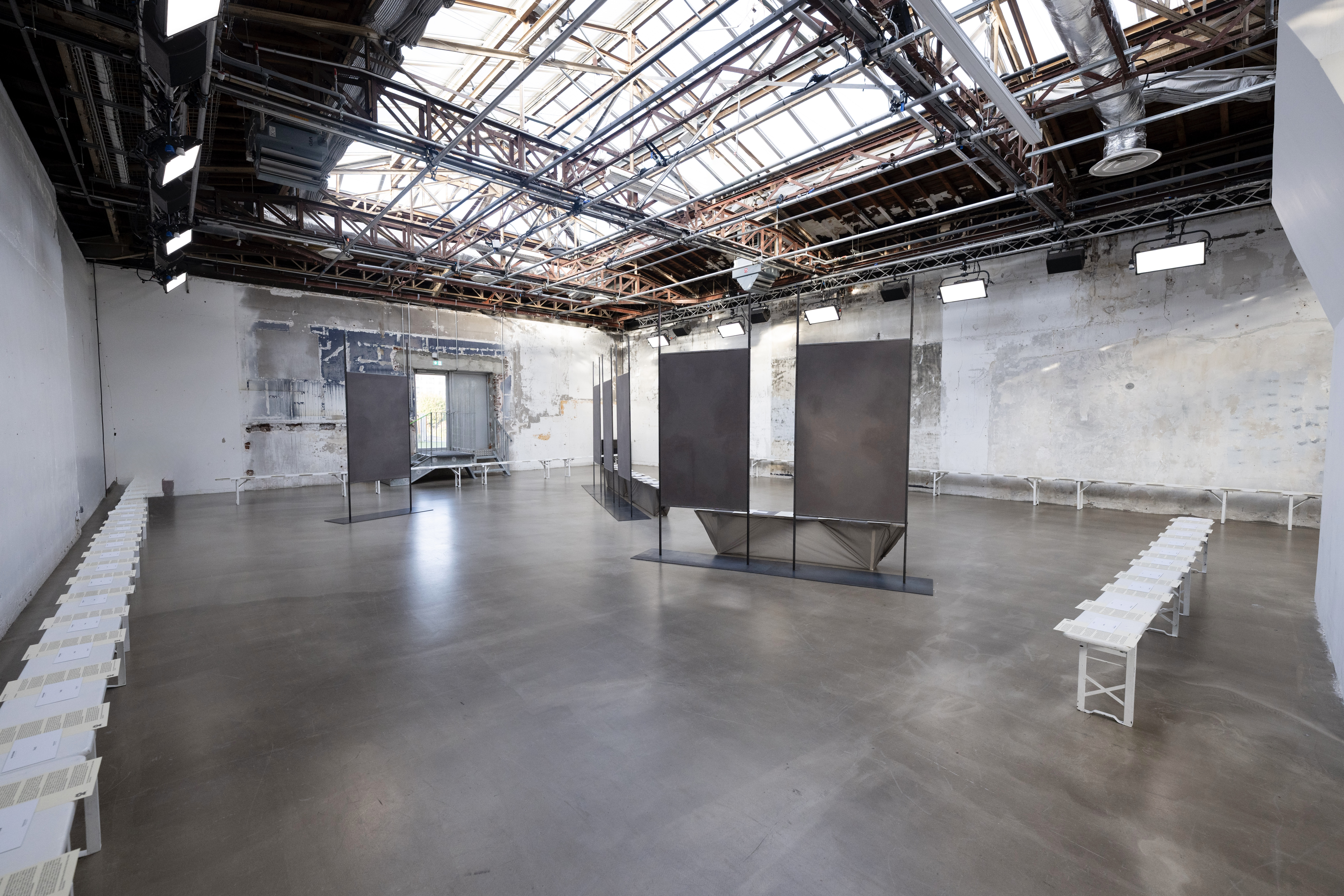 At Palais de Tokyo, Laura and Deanna Fanning presented their SS26 Collection for Kiko Kostadinov. Inspired by the American artist Christina Ramberg, the collection and show explored structure, form, and femininity through a lens of abstraction.